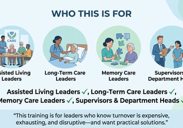 A practical leadership and culture training system for senior care communities that want to improve retention, communication, and trust.